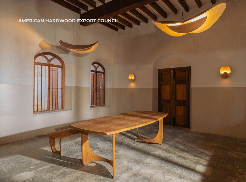 One of the most anticipated installations at Design Mumbai 2025 is the American Hardwood Export Council (AHEC) showcase. It features a landmark collaboration with Indian furniture manufacturer Phantom Hands, presenting a diverse collection of works developed through a series of high-profile design collaborations. The AHEC stand will bring together voices from around the world, including Melbourne-based architect and maker Adam Markowitz. The cross-cultural collaboration spotlights the sustainable use of American cherry, maple and red oak in a range of sculptural pieces of furniture, including a dining table, bench and wall sconce lamps. Also on display will be new works by x+l, Chandigarh Collective and Inoda+Sveje