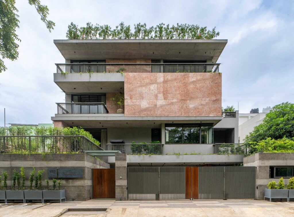 The layout prioritizes openness and connectivity. The ground floor accommodates a parking space, office, gym, and guest bedroom, while a landscaped porch seamlessly integrates with the surroundings. On the first floor, the drawing room, living area, mandir, dining, and kitchen unfold in a fluid arrangement, anchored by a master bedroom that overlooks the raised garden enhancing the aesthetic appeal of outdoor spaces, and make gardening more accessible on first floor. The second and third floors offer additional common spaces and entertainment areas, with three bedrooms on each level—each thoughtfully crafted to balance privacy with shared experiences.