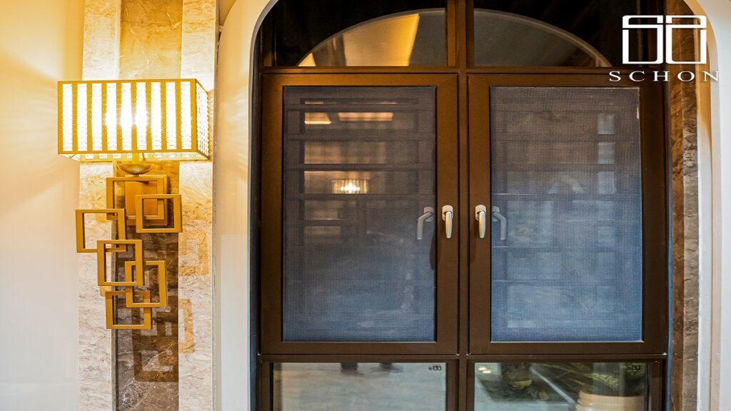 Precision-engineered aluminium with insulating tempered glass, the newly introduced casement windows of Schon Doorways have an unmatched form and functionality. The ultra-slim profiles (with a wall thickness varying from 1.6 mm to 5.00 mm) are incorporated in both single and double track formats, providing design freedom. Designed to withstand heavy rain, high winds, and temperature changes, these windows feature anti-collision strips, high-load capability, and flyscreens for bug-free bliss – the perfect selection for the monsoon season.